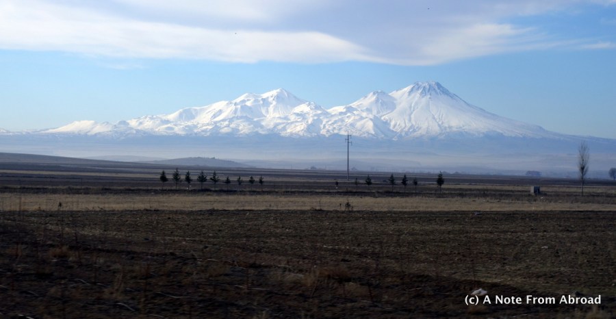Snow capped mountains on the drive toward Ankara