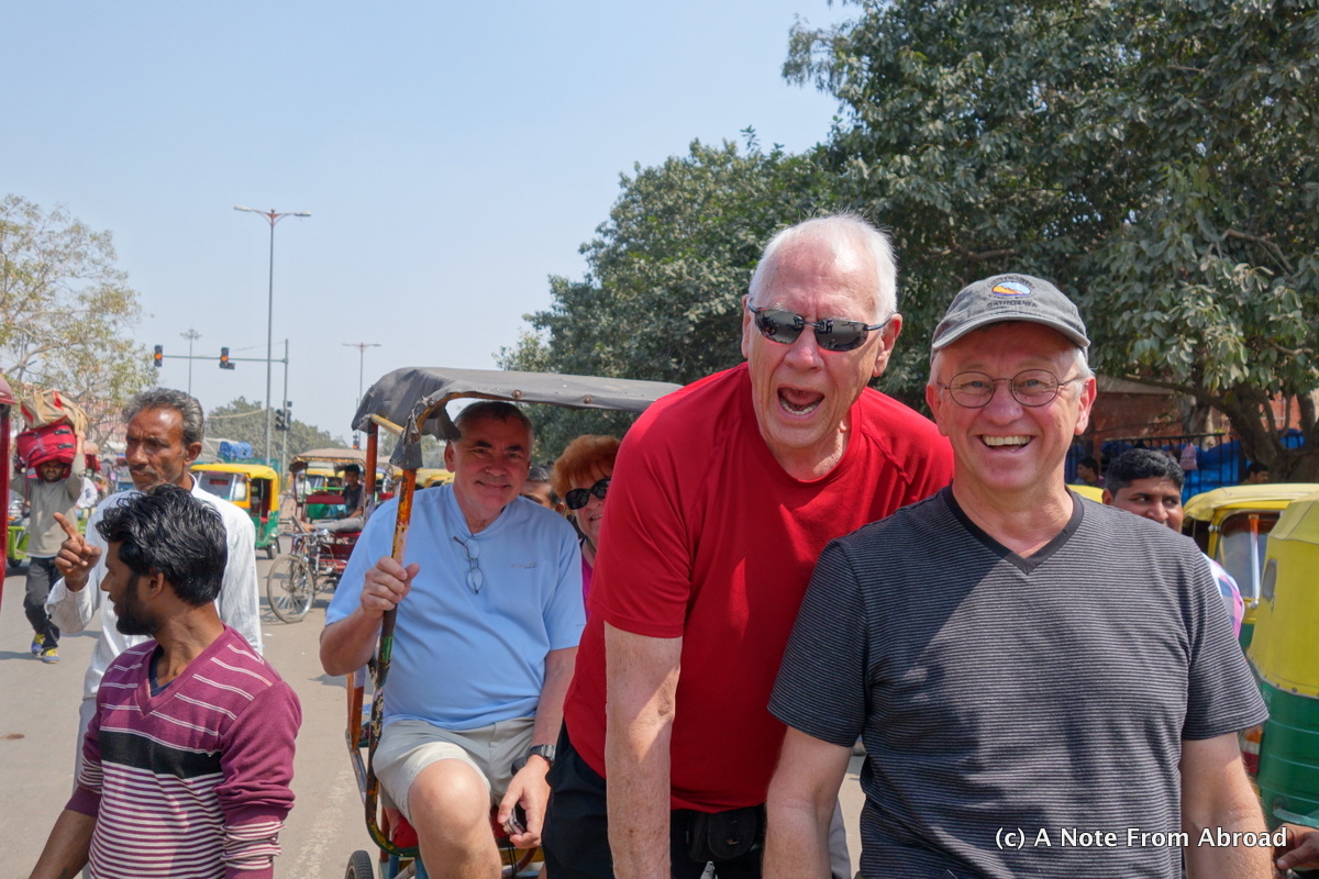 Dick and Tim hijack a bike rickshaw as Gary and Jan enjoy the ride