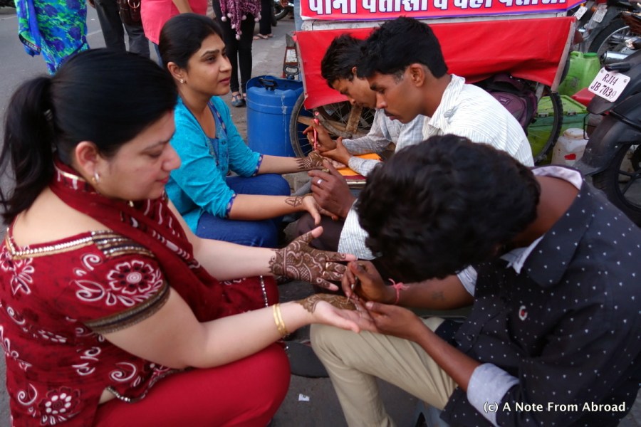 Painting henna patterns on hands