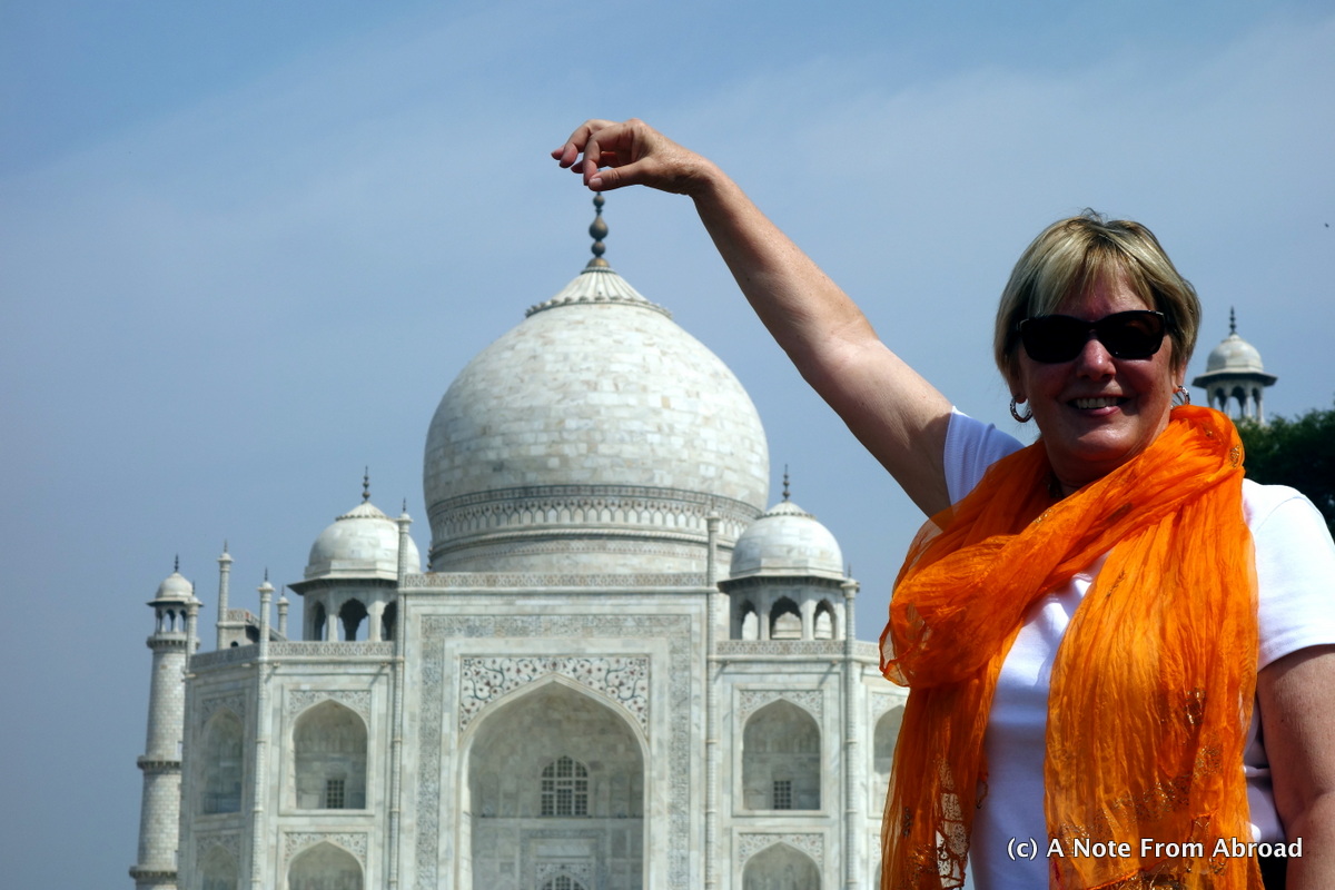 Holding the Taj up by the top