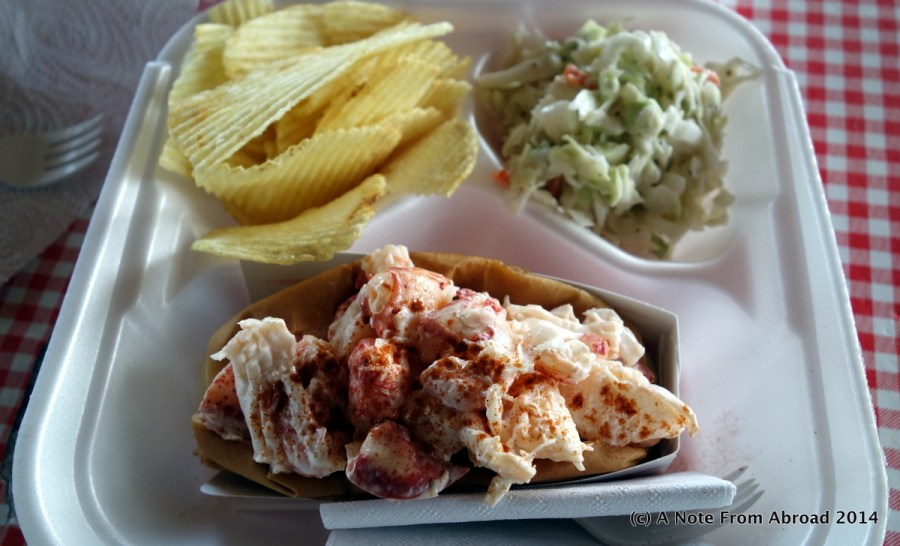 Lobster roll with chips and cold slaw