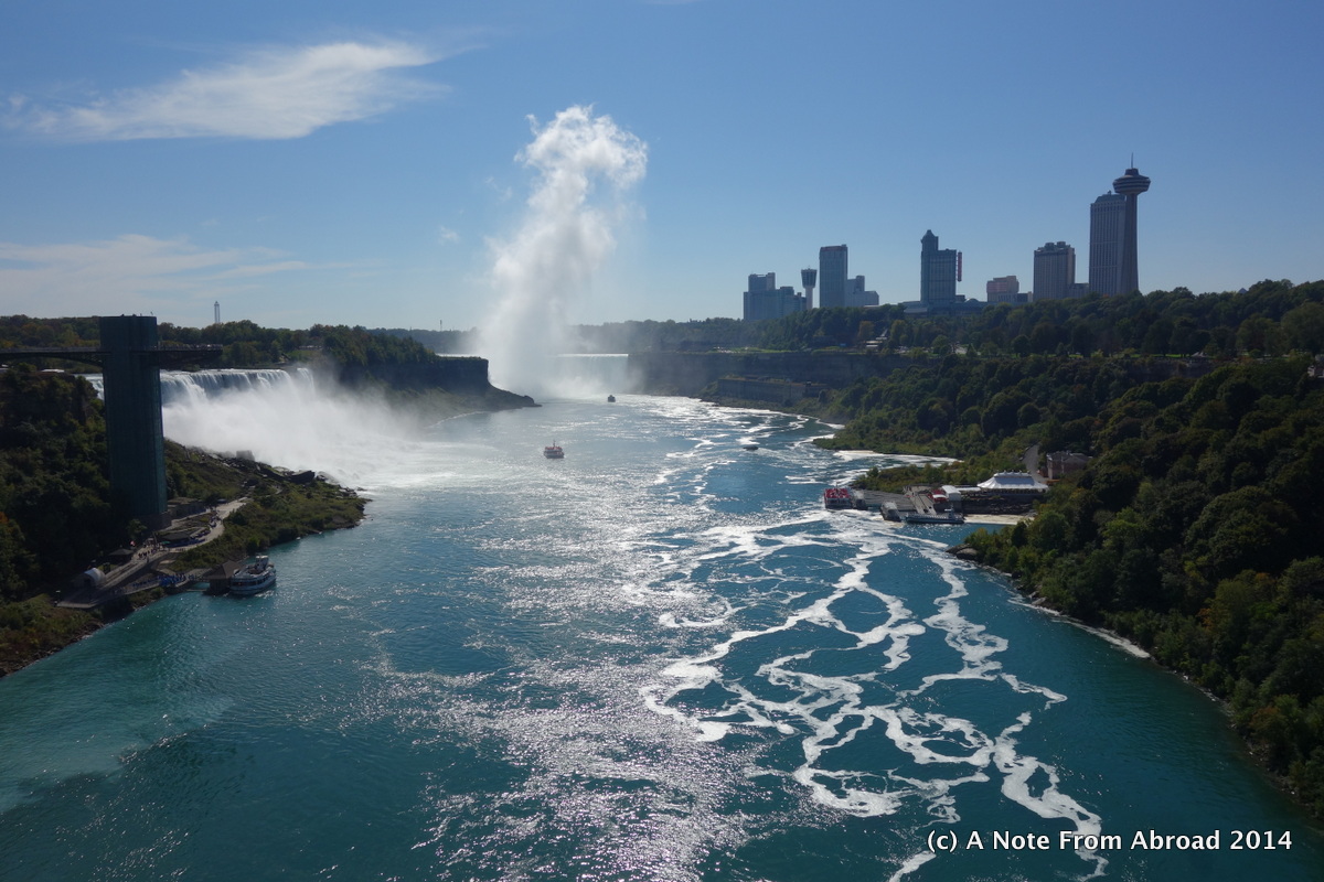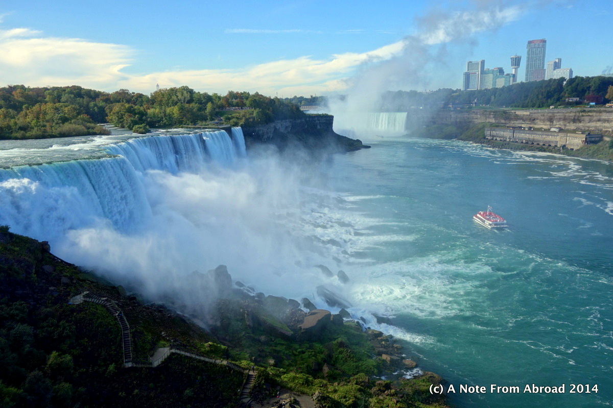 I grew up near Niagara Falls. Such a wonderful place – glad you got to see it from both sides. Once in the 1970s while attending Buffalo State Un., we went to the US park at night, and crossed to Goat Island. There were no fences or restrictions, and we went to the edge of the falls, and you could only hear the thunder, but not see the bottom. It was a magical experience.