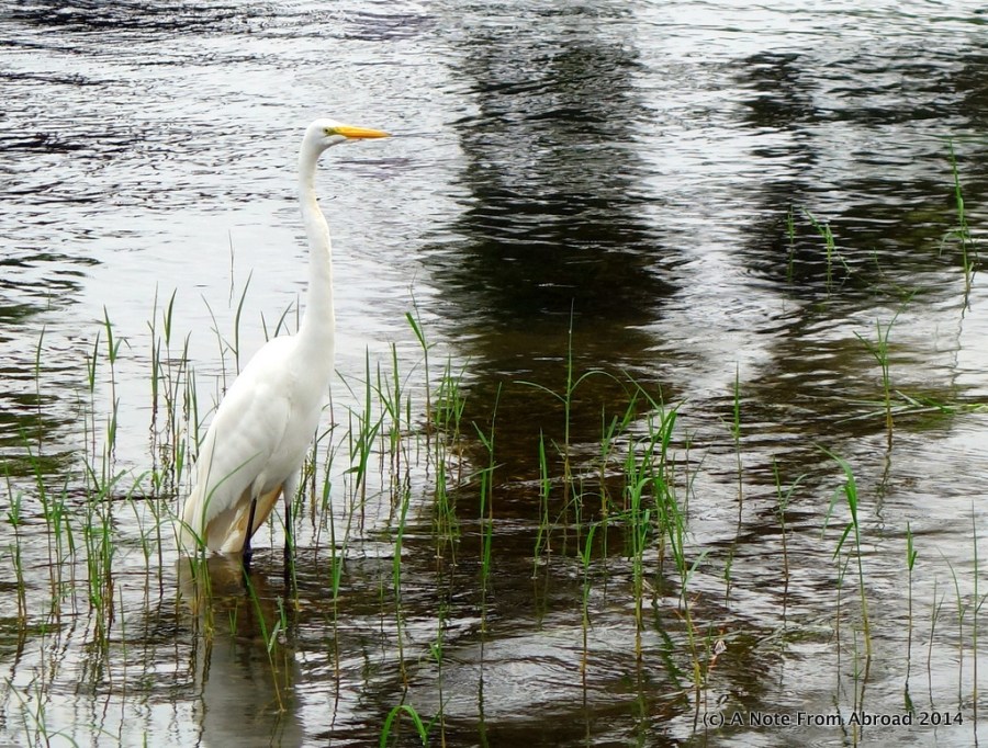 White Heron in front of our hotel, on the Rio Dulce