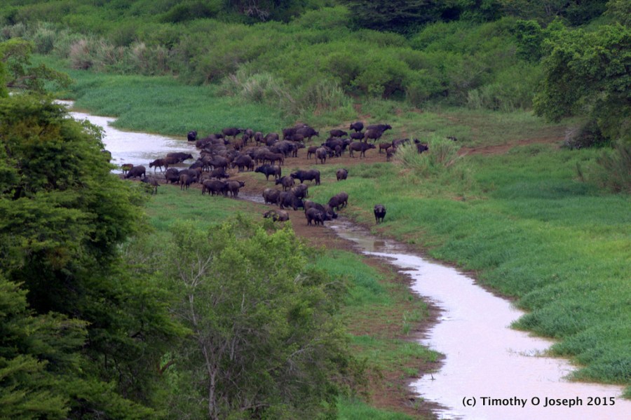 Cape buffalo at a watering hole