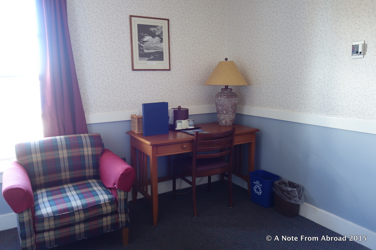 The one thing I had always wanted to do was to stay at the lodge here at the lake, and this time we made it happen. Often sold out months in advance, I somehow lucked out and got us a room with a view of the lake. I’m not sure how that transpired, as I just now did a reservation search and found one night available the 11th of October and the next available night is the end of May 2016.