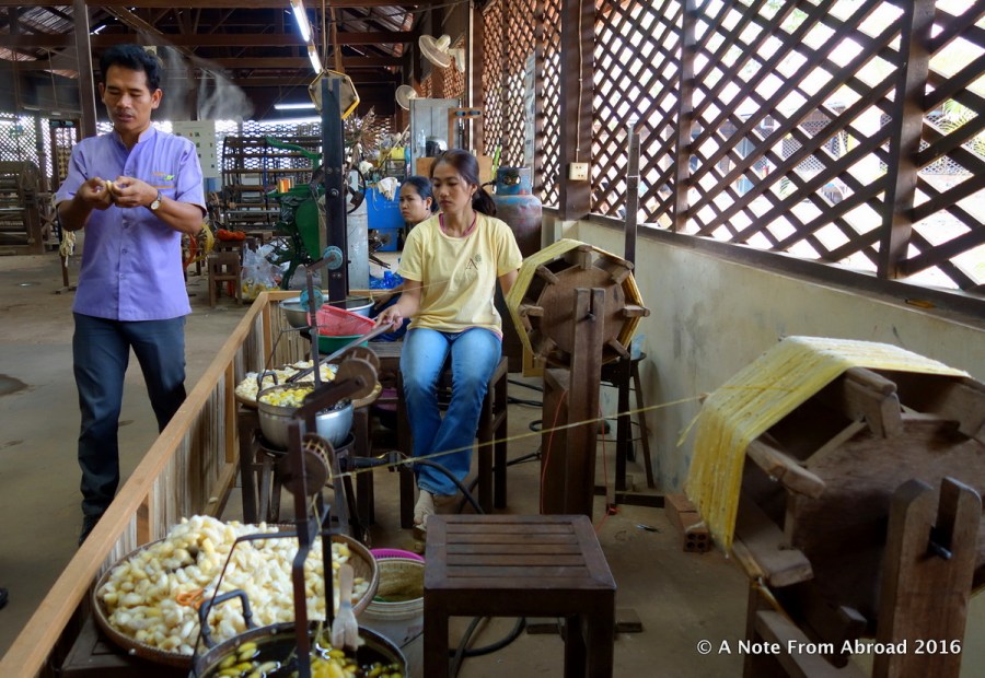 Unwinding the silk from cocoon into threads