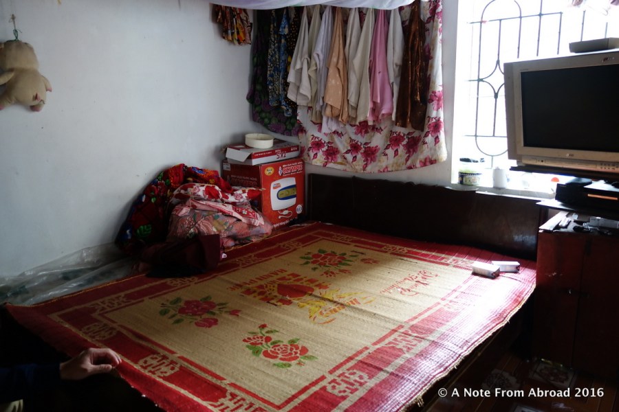Her bed with sleeping mat on top