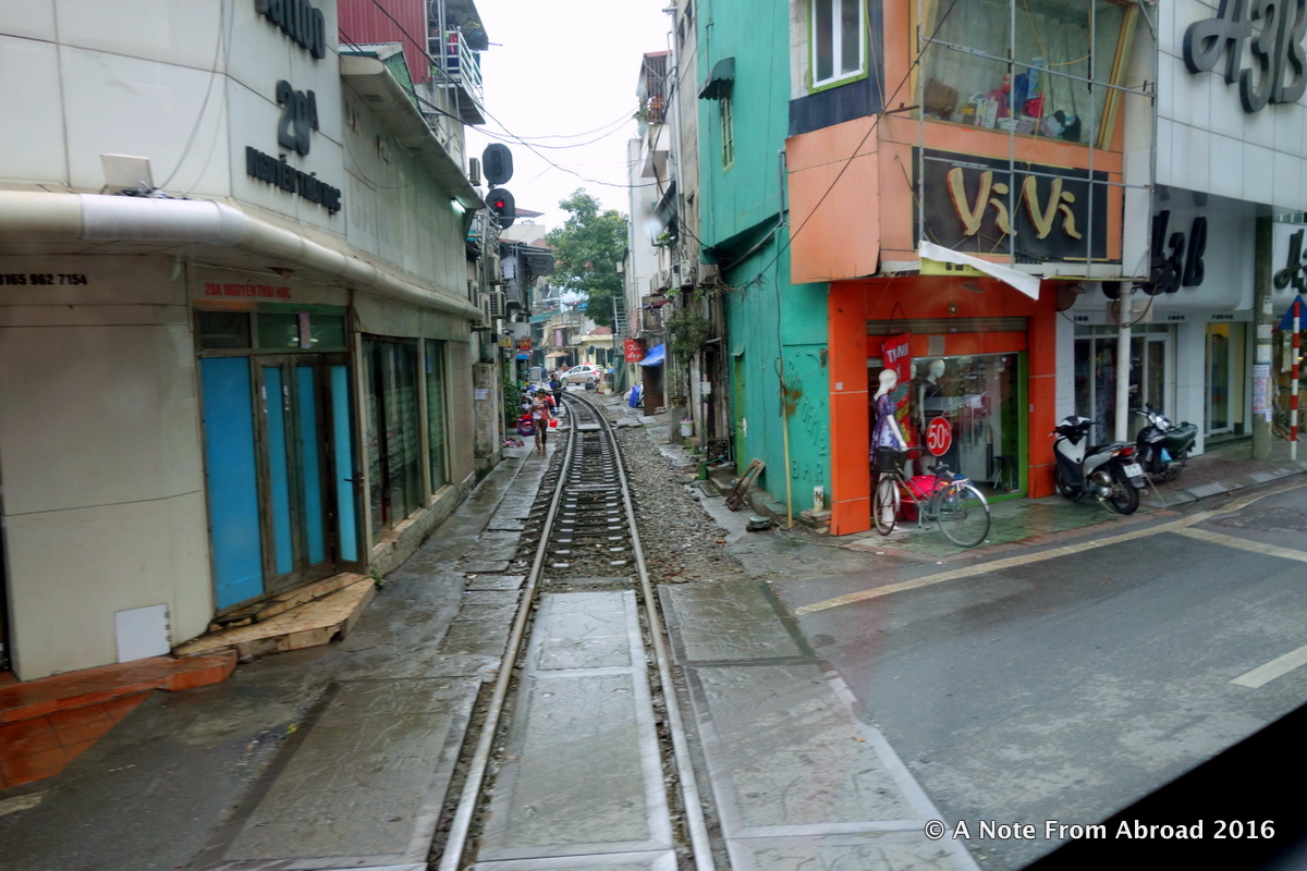 Where the train tracks come right through the middle of town.