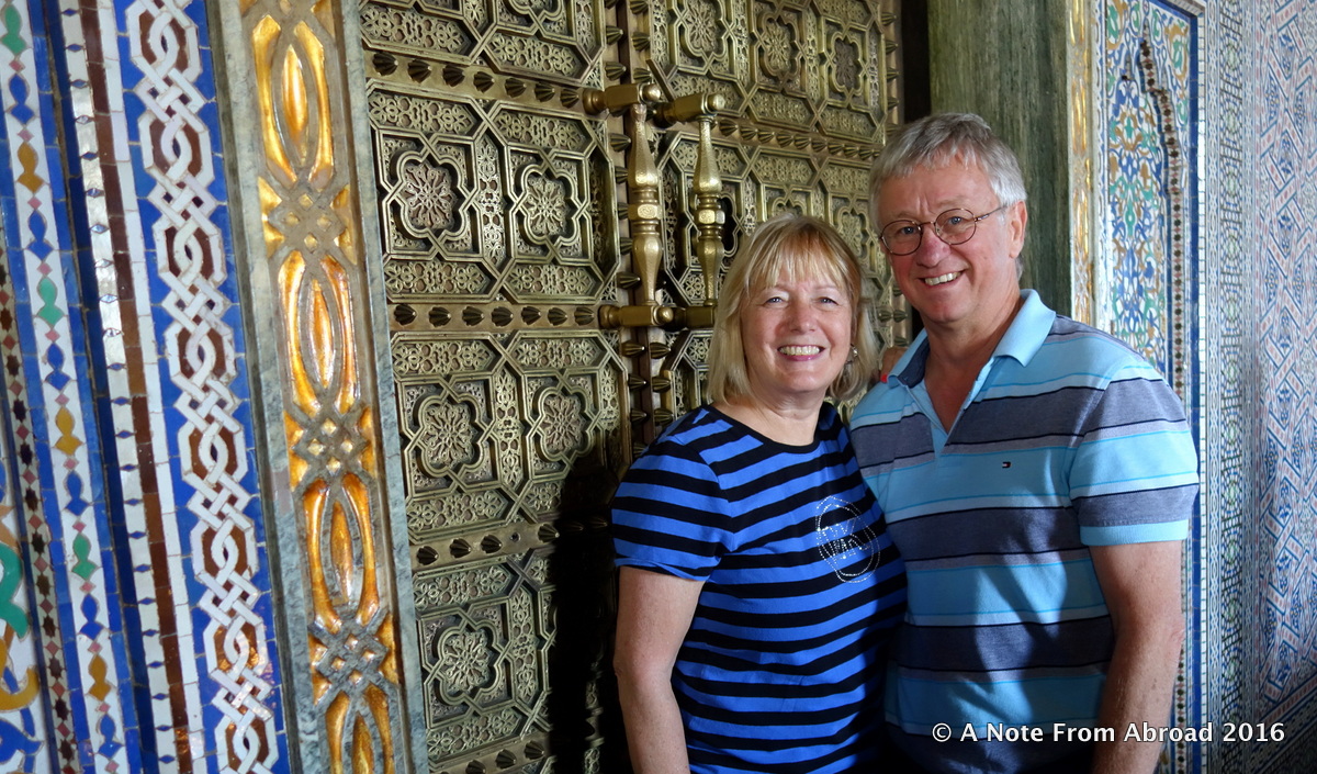 Tim and Joanne at the Mausoleum of Mohammed V, Rabat, Morocco
