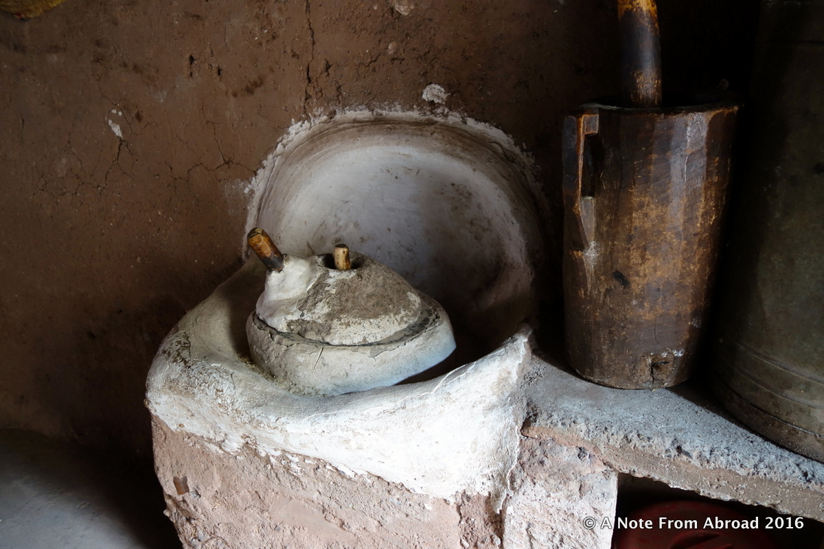 Inside the kitchen where a grinding stone is still in use