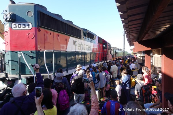 Today is Palm Sunday and school vacation was starting for many. The Chihuahua al Pacifico Railroad had added quite a few additional cars to take the many vacationers, but we still sadly left many behind who had not booked and paid for their reservations. Our train was full.