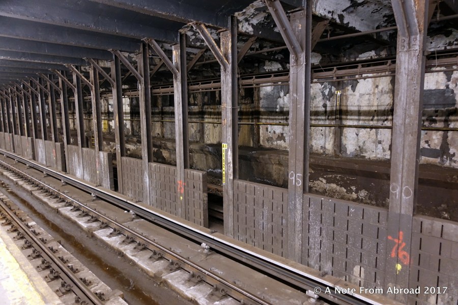 Inside of a well worn subway station on 86th Avenue