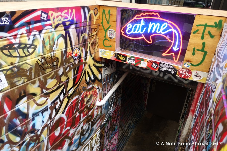 Colorful entrance to sushi/fish house