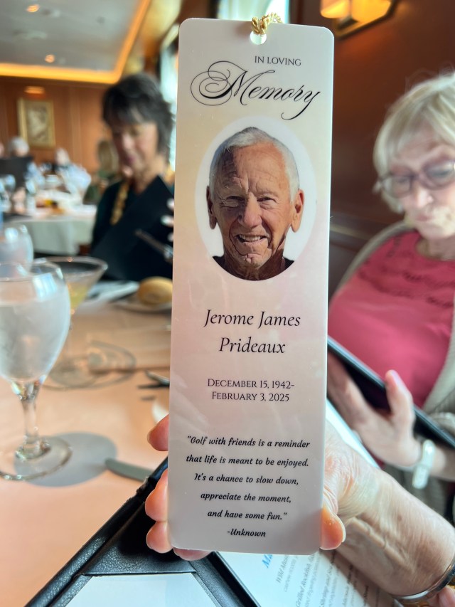 After tossing the roses overboard, both Linda and Jeanne spoke a few special words about their loved one. And at dinner that evening they shared this bookmark.
