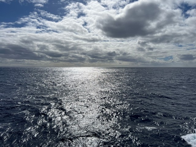 At dinner one evening, Jeanne and her mother, Linda, asked us to meet them at 4:20 the following afternoon in front of the elevators on deck 7, aft. This was a sea day. A crew member was also present and escorted our small group outside, and into a private section of the ship, all the way in the back. He brought four perfect white long stem roses with him.